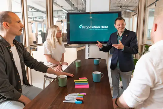 Veel bedrijven verdrinken in een zee van grijze gelijkheid. Ze praten over hun product, dienst of ambities, maar missen het haarscherpe verhaal dat klanten écht in beweging brengt. Proposition Hero helpt je om je aanbod te versterken, keuzes te maken en de enige oplossing in jouw markt te worden. Geen vaag gedoe, maar een superheldere propositie die urgentie ademt en de juiste snaar raakt. Zo ben jij geen optie, maar onmisbaar.